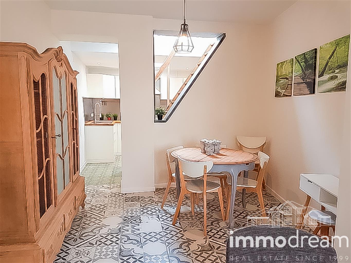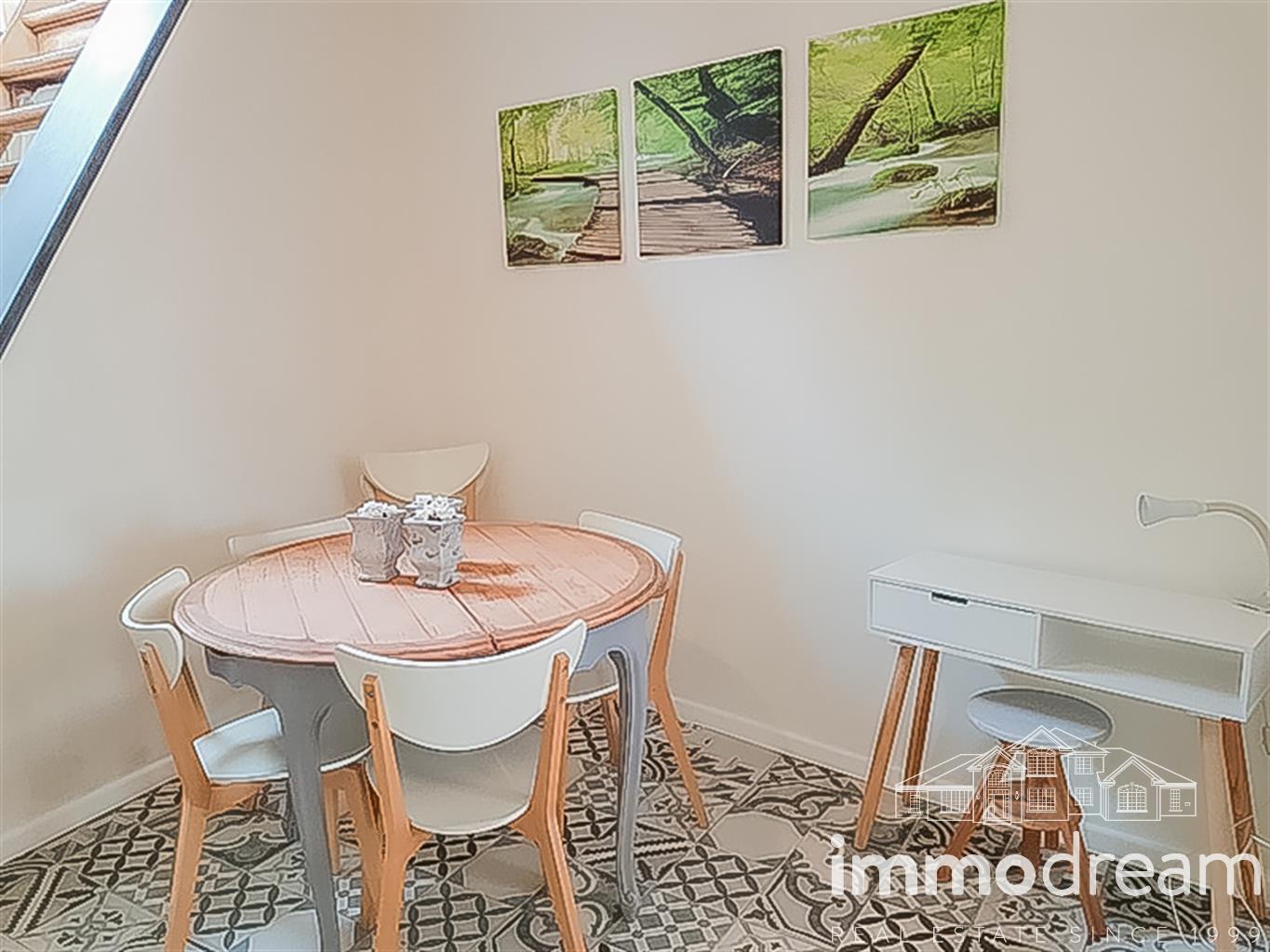"Coin du Balai", dans un cadre calme et verdoyant, bénéficiant d'une vue agréable, charmante maison villageoise entièrement rénovée et meublée en 2018. Elle se compose de pièces de réception et d'une cuisine toute équipée au rez-de-chaussée. Au 1er étage on y trouve une chambre de +/- 15m², une terrasse d'agrément avec vue dégagée et une SDB. Au 2ème étage, une seconde chambre lumineuse de +/- 13m². Cette adorable maison se trouve à proximité de toutes les commodités, transports, écoles, commerces, restaurants, parc Tournay Solvay, forêt de Soignes, marché du dimanche matin. Elle sera disponible dès le 1er mai. Suite aux complications liées à la crise sanitaire, aucune visite n'est possible jusqu'à nouvel ordre. Envoyez nous un e-mail sur info@immodream.com et nous pourrons vous faire suivre une vidéo de visite virtuelle.