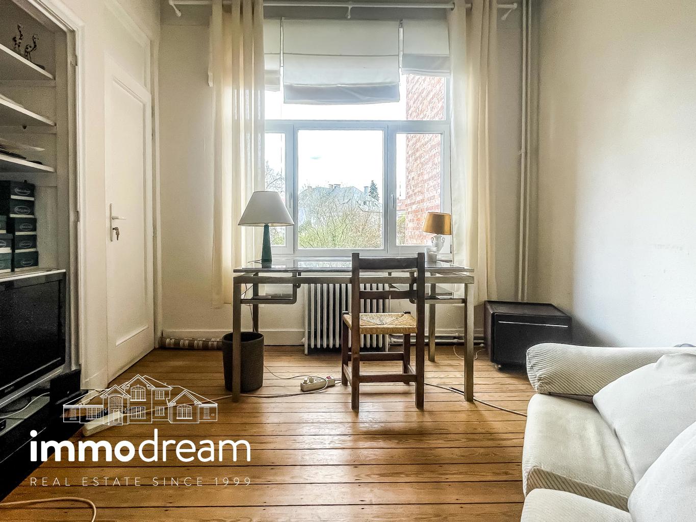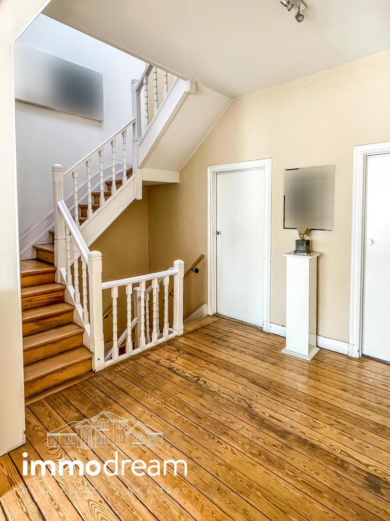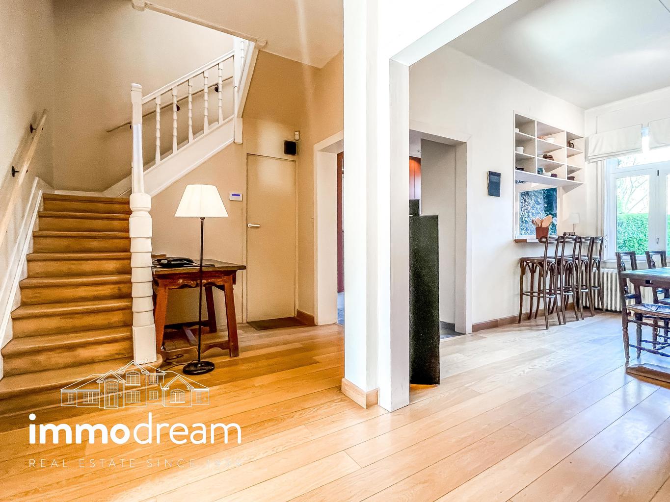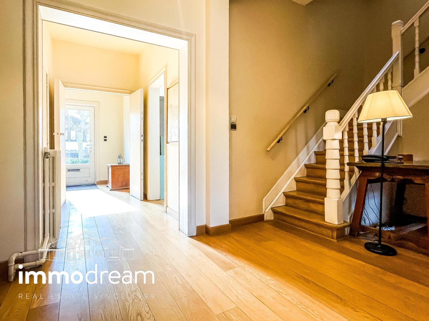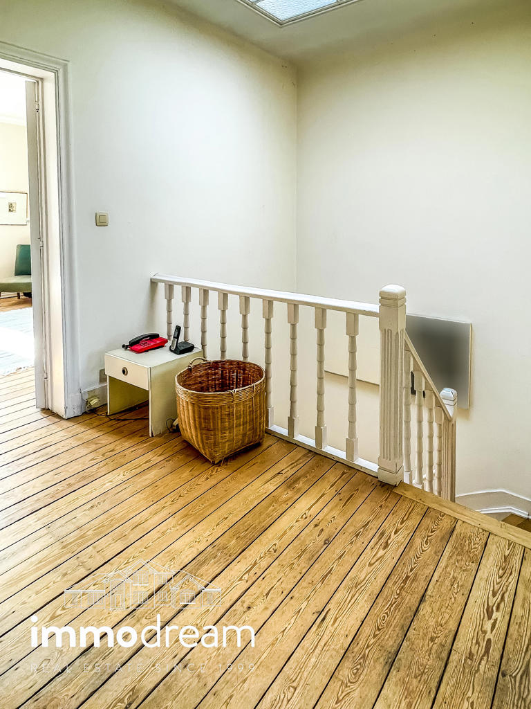 Uccle quartier Langeveld - Floride, maison unifamiliale de 1934 développant une surface brute de 213m² hors sous-sol (cfr. PEB) sur un terrain de 1a89. Elle se compose au rez d’un hall d’entrée avec vestiaire, WC et bureau de 14m², accès vers les caves, cuisine équipée semi ouverte sur la salle à manger. Terrasse et jardin de +/-80m² exposés N-E. Au 1er étage, un séjour lumineux avec feu ouvert et bibliothèque, WC, chambre de 13m² avec terrasse de 3m² et SDD avec espace buanderie. Au 2ème étage, se répartissent la chambre principale de 25m², une SDB avec baignoire et deux chambres de 11m² chacune. Toiture plate en epdm. Sous-sol avec caves de rangement, chaufferie, compteurs. Parking 2 voitures. PEB catégorie D. Installation électrique non conforme.