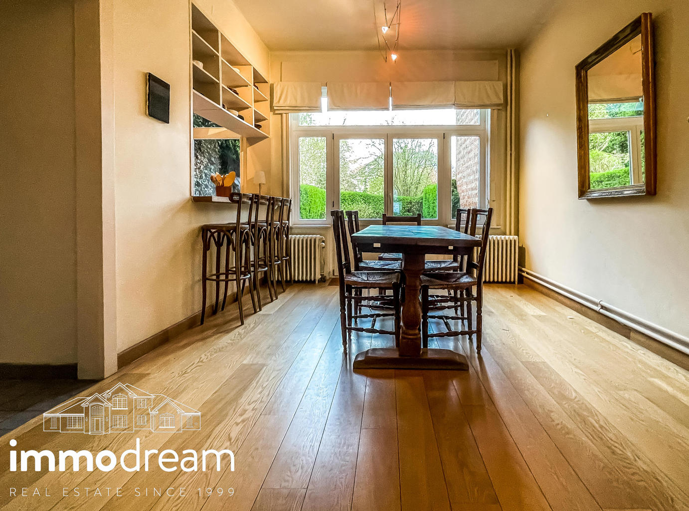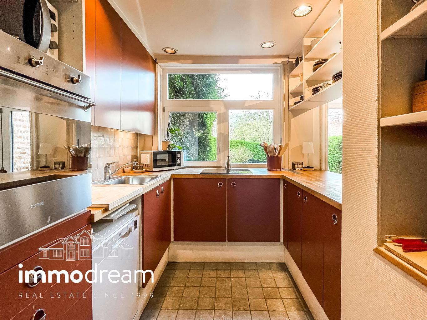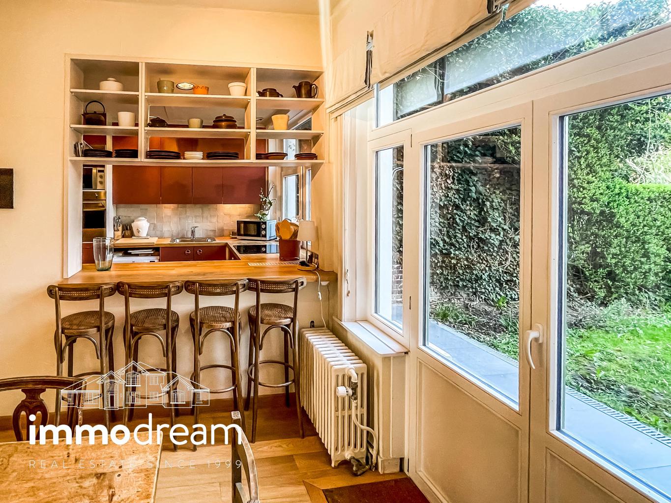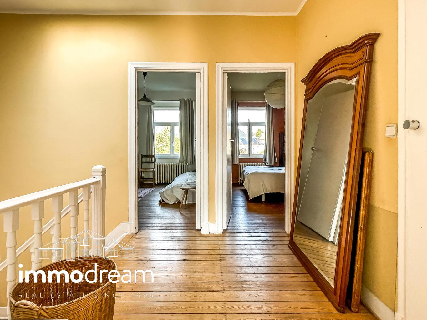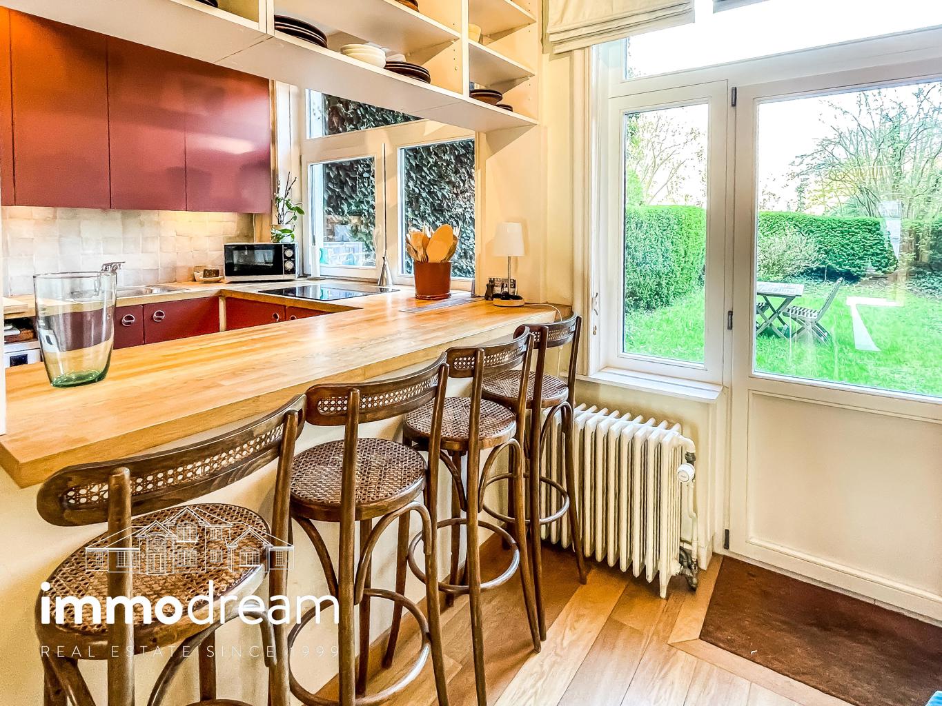 Uccle quartier Langeveld - Floride, maison unifamiliale de 1934 développant une surface brute de 213m² hors sous-sol (cfr. PEB) sur un terrain de 1a89. Elle se compose au rez d’un hall d’entrée avec vestiaire, WC et bureau de 14m², accès vers les caves, cuisine équipée semi ouverte sur la salle à manger. Terrasse et jardin de +/-80m² exposés N-E. Au 1er étage, un séjour lumineux avec feu ouvert et bibliothèque, WC, chambre de 13m² avec terrasse de 3m² et SDD avec espace buanderie. Au 2ème étage, se répartissent la chambre principale de 25m², une SDB avec baignoire et deux chambres de 11m² chacune. Toiture plate en epdm. Sous-sol avec caves de rangement, chaufferie, compteurs. Parking 2 voitures. PEB catégorie D. Installation électrique non conforme.