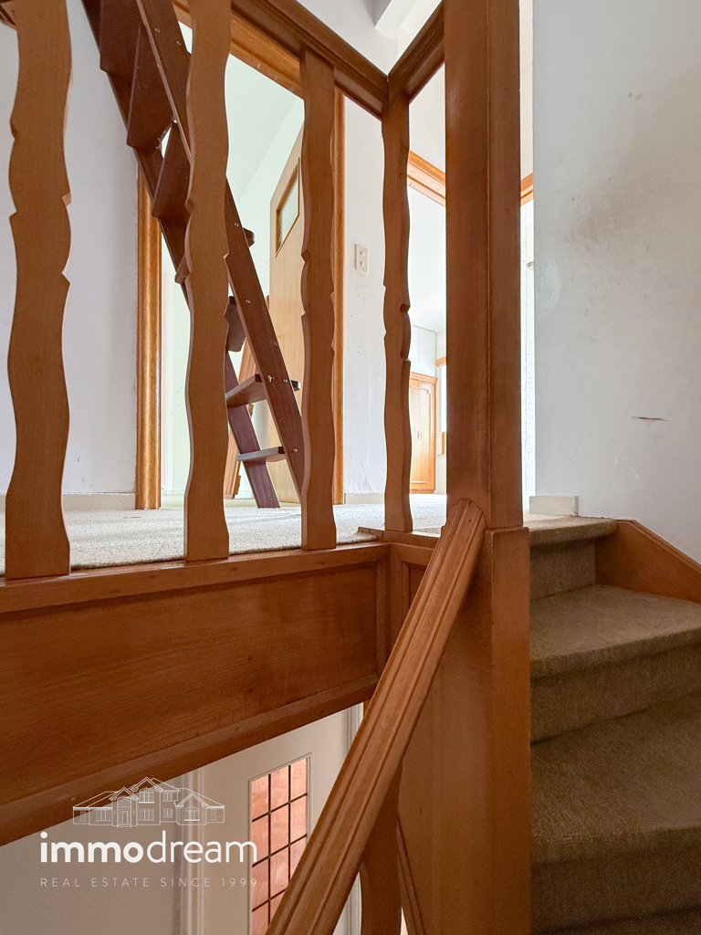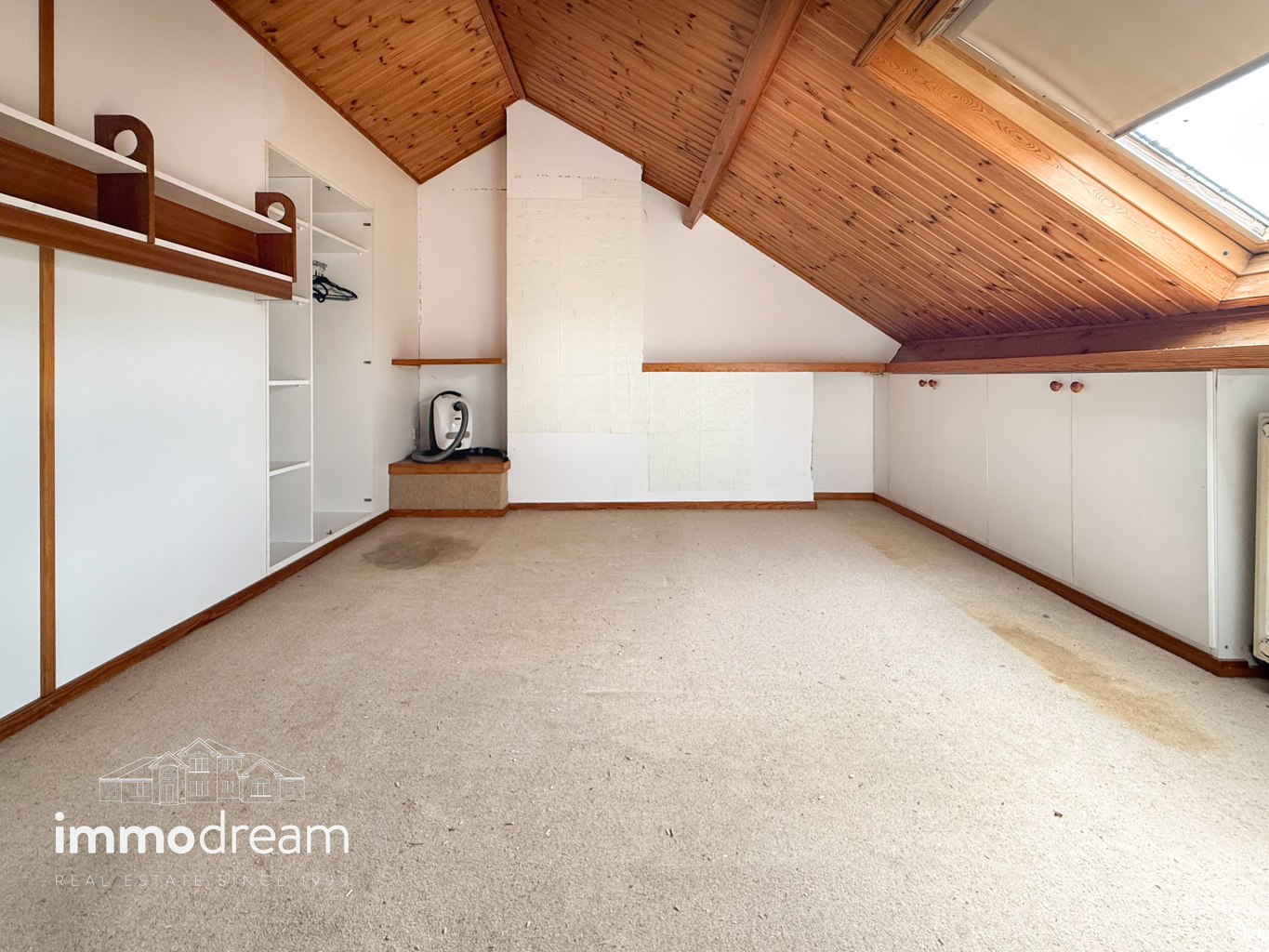 au 2ème et dernier étage: grenier transformé en 4ème chambre de +/- 14m² avec salle de bains attenante, espace grenier