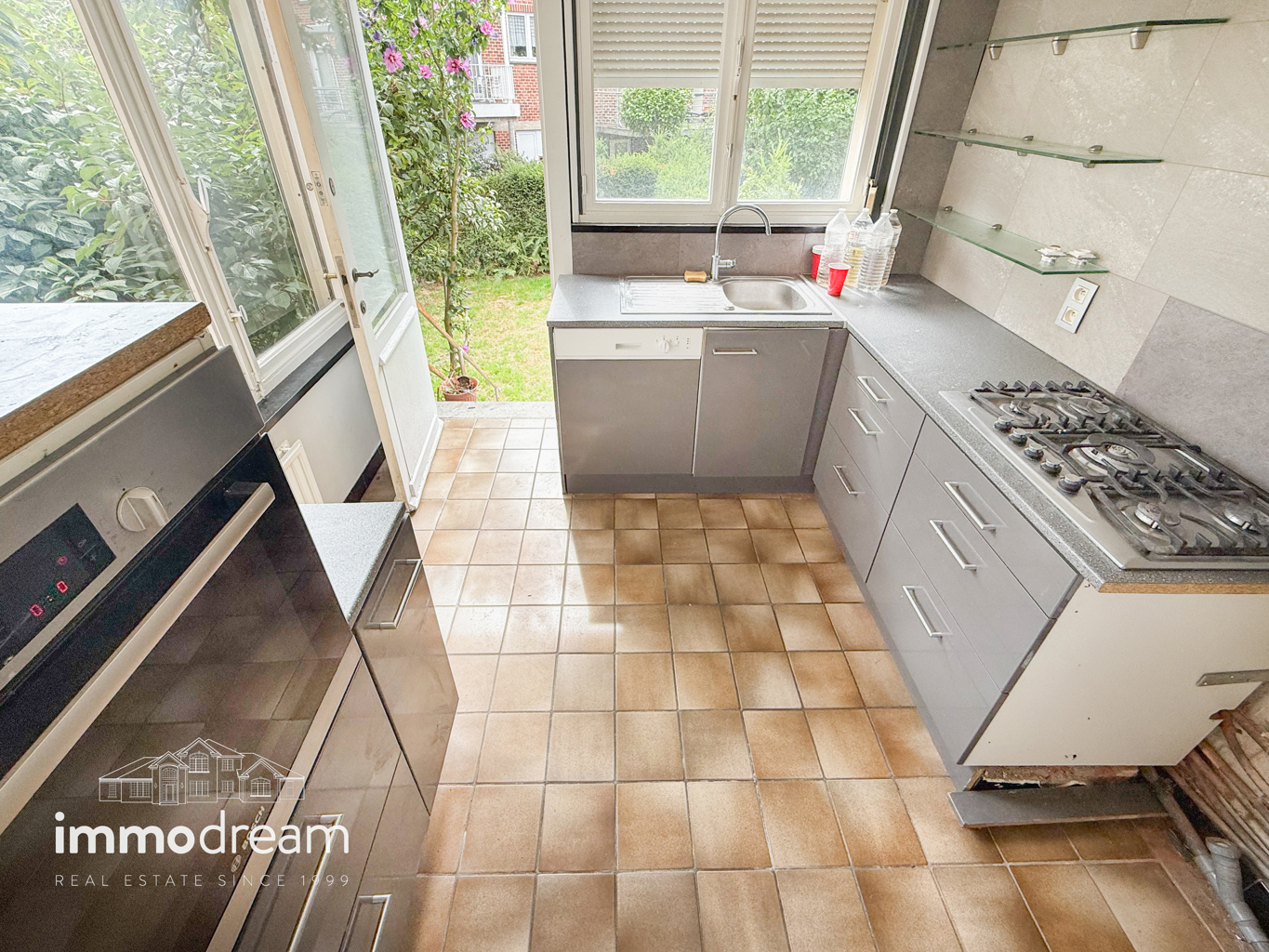 au rez-de-chaussée: hall d'entrée avec wc invités, séjour de +/- 33m² et cuisine arrière donnant accès au jardin orienté Sud-Est